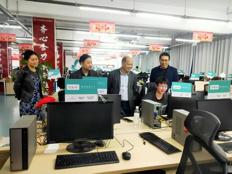 在企业相关负责人的陪同下,袁书记实地走访了学生主要工作岗位区域,细致察看了实习环境与工作条件,并就实习内容、生活保障及整体安排等情况与企业和学生进行了深入交流。期间,袁书记与客服、直播等岗位的实习生亲切交谈,认真听取同学们的实习体会与收获,对大家展现出的良好精神风貌和积极工作状态给予了高度认可。他勉励同学们要珍惜实践机会,在真实职业场景中不断锤炼专业技能,全面提升综合素养,为未来职业生涯奠定坚实基础;同时,他也反复叮嘱同学们要牢固树立安全意识,自觉遵守企业与学校的各项管理规定,服从实习安排,确保实习期间人身与财产平安。