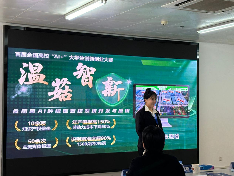 大赛以“数智燃创 共赴非凡”为主题,获奖项目覆盖智慧农业、生物医药、政务服务、文化传承等多个领域,展现了AI技术的多元应用场景,技术创新与产业需求的碰撞持续迸发火花。温菇智新项目“直指现代农业痛点”,为传统的食用菌种植业装上了“AI大脑”。“青年学子用AI破解产业痛点,将社会价值置于首位,这正是高等教育‘立德树人’理念的生动实践”。在现场大赛评委对于该项目取得的成果给予肯定。